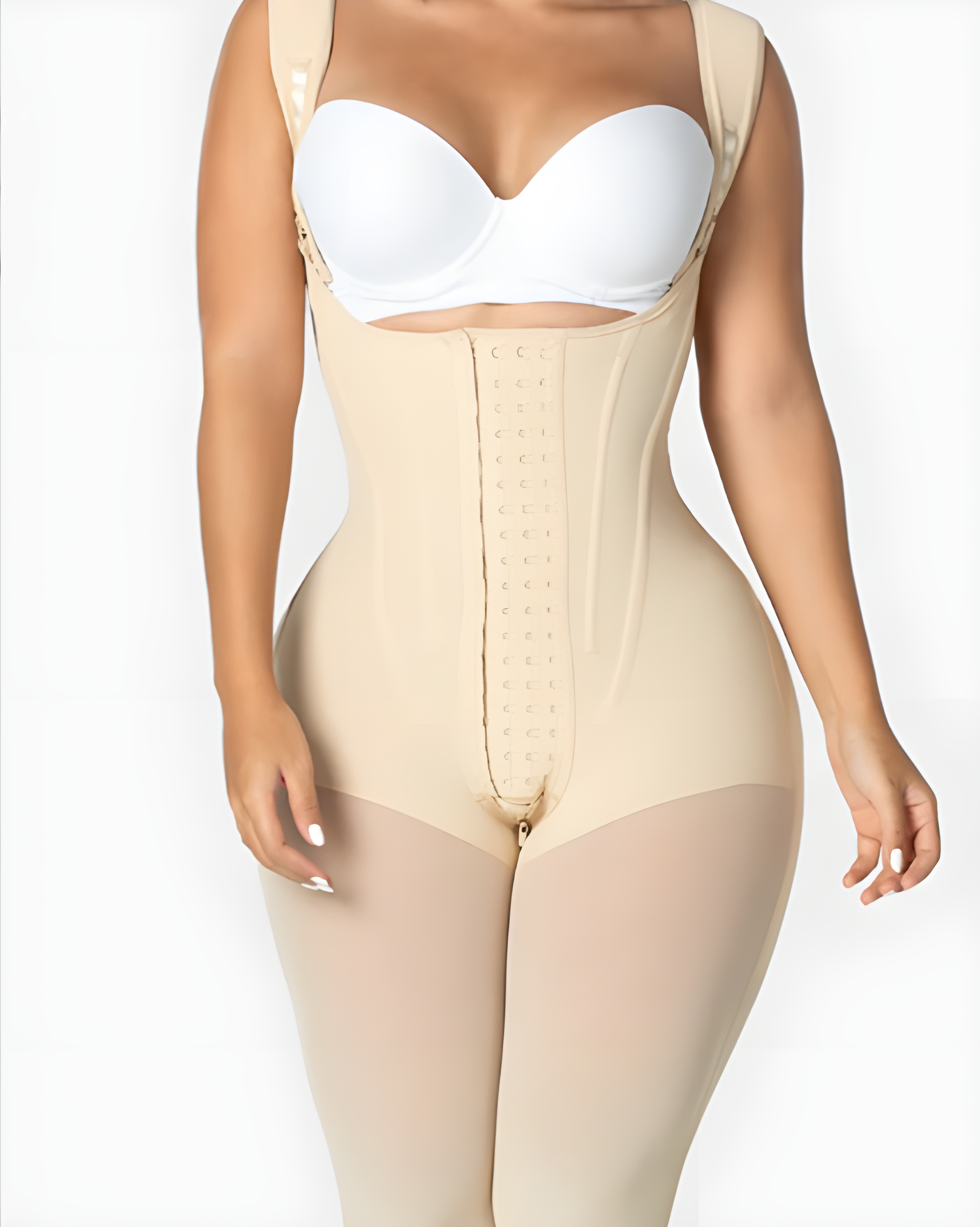 Double-layered elastic fabric provides tummy control, leg trimming, butt lifting, and body contouring